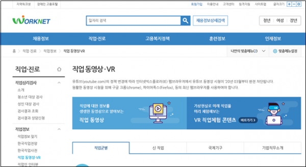 한국고용정보원은 미래 신직업 가상현실 체험 콘텐츠 2종을 제작해 워크넷에 추가했다고 밝혔다.