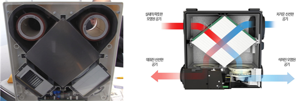 전열교환기는 실내 오염된 공기를 외부로 배출하면서 공기의 열에너지를 회수해 신선한 외부 공기를 실내온도에 가깝게 맞춰 주는 장치이다.