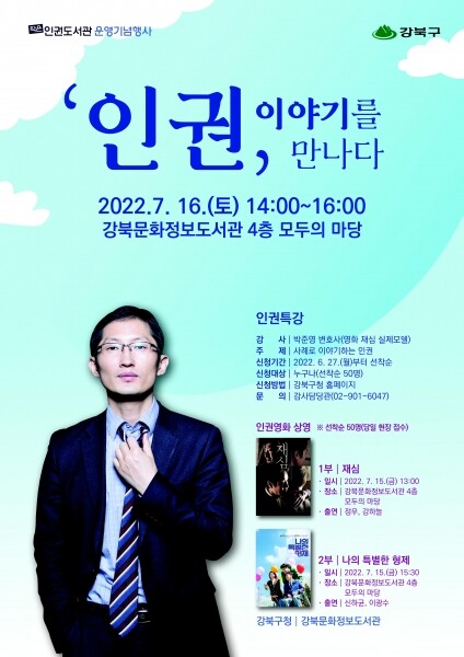 또한 16일 오후2시부터는 영화 ‘재심’의 실제 모델 박준영 변호사가 ‘인권, 이야기를 만나다’란 주제로 특강을 진행한다.