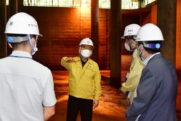 현장을 찾은 류경기 중랑구청장은 배수펌프 가동여부와 운영상태 등을 살피며 현장 관계자들에게 지속적인 점검과 철저한 운영을 당부했다.