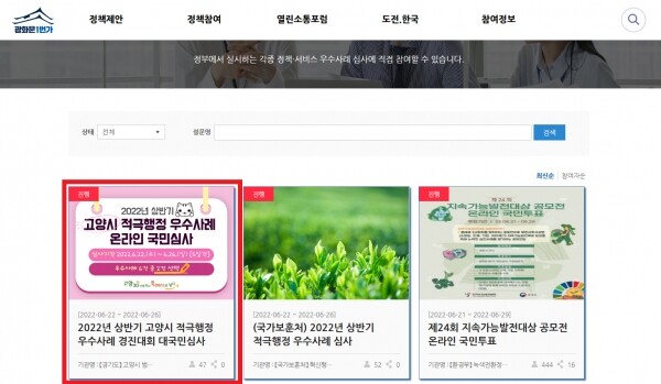 시는 온라인 국민심사를 광화문1번가 홈페이지 국민심사 코너에서 6월 26일까지 진행한다고 밝혔다.