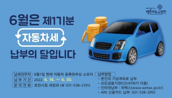 ▲ 포천시, ‘2022년 6월 정기분 자동차세 납부하세요’