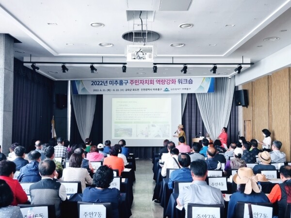 조덕환 미추홀구 주민자치협의회장은 “워크숍을 통해 주민자치회 위원들이 서로 소통하고 더 나아가 협업하는 계기가 되기를 바란다”며 “주민자치회 맞춤형 사업들을 통해 주민자치회 도약과 발전에 도모할 수 있도록 노력하겠다”고 말했다.