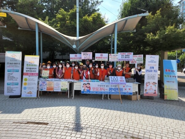 이날 캠페인은 동두천시와 동두천경찰서 동두천시 가족센터, 동두천시 여성단체협의회, 동두천성폭력상담소, 불법촬영감시단 등 30여명이 함께 모여 관내 위기가구를 발굴하고 예방하기 위해 준비한 캠페인으로 “가정폭력 없는 우리 집 웃음 가득, 행복 만땅”이라는 주제로 홍보물 배부, 가두 홍보 등을 진행했다.