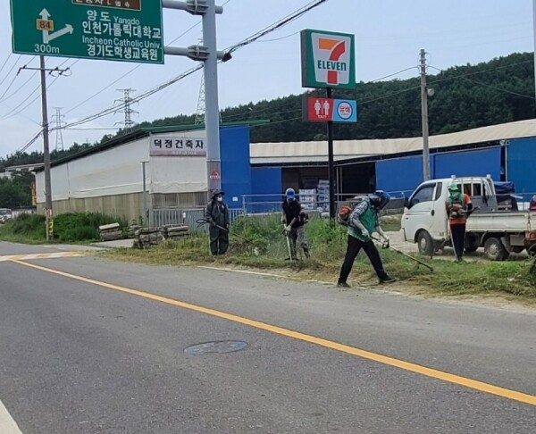 이날 지도자 12명은 이른 아침부터 무더운 날씨에도 불구하고 대청교를 시작으로 덕진진 도로변까지 약 5.3km 구간의 잡풀을 제거했다.