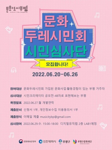 문화시민심사단은 ‘시민크리에이터 공모전: 48자로 표현하는 부평’에 접수된 작품을 심사하는 것으로 첫 활동을 시작한다.