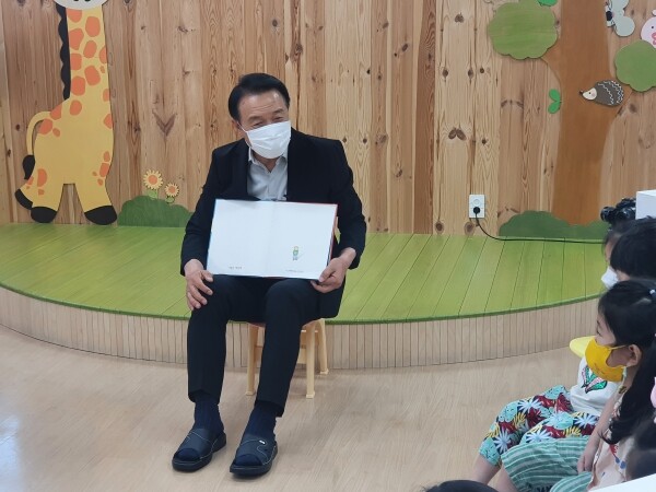 임 당선인은 유아들이 직접 고른 그림책을 읽어주고 함께 이야기 한 후 비행기 날리기,? 파라슈트 신체활동, 대형 블록 놀이를 함께 했다.