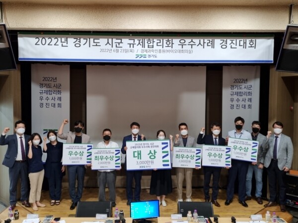 우수상에는 ‘도시자연공원구역 내 태양광에너지 설비 설치 완화’ 사례를 발표한 화성시 ‘상수원보호구역 내 건축물 용도변경 규제 합리화로 곤충산업 진입장벽 완화’ 사례를 발표한 양평군 ‘개발제한구역 내 공익사업 수용건축물 재사용 허용’ 사례를 발표한 의왕시가 선정돼 각 1천만원을 받았다.