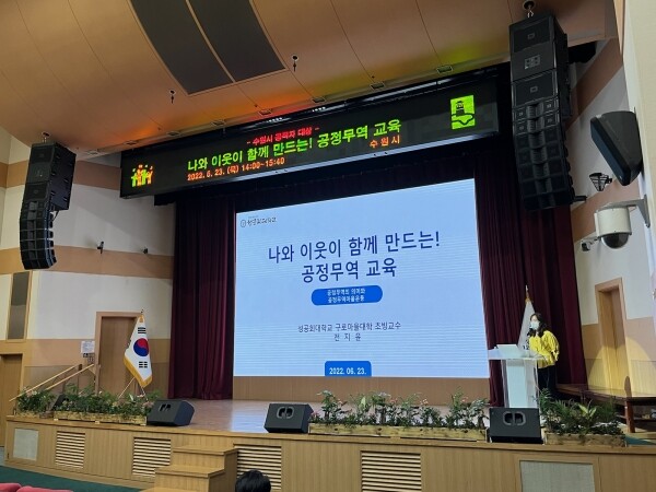 ‘나와 이웃이 함께 만드는 공정무역’을 주제로 강연한 한국공정무역마을위원회 전지윤 이사는 공정무역의 정의·역사 공정무역의 원칙·특징 공정무역으로 인한 변화 공정무역마을 등에 관해 설명했다.