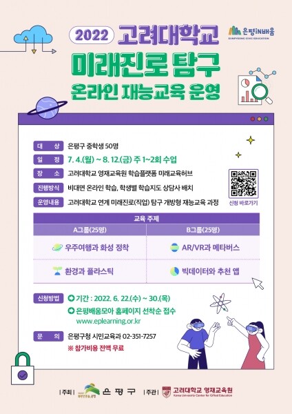 은평구와 고려대학교 영재교육원이 연계해 운영한다.