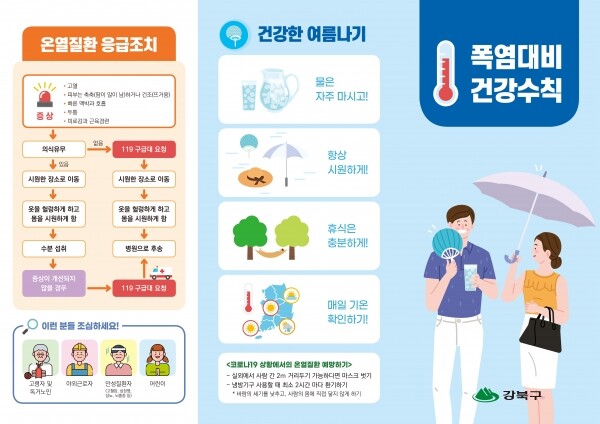 이에 강북구는 여름철 재난사고를 선제적으로 대응하기 위해 4개 분야, 15개 안전대책을 수립했으며 폭염대책본부를 구성해 단계별 폭염 대응에 나서고 있다.