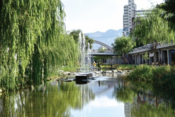 기존 콘크리트 구조물에 둘려쌓여 있던 하천변은 생태경관 개선사업으로 초록빛을 한가득 더해 산책하는 주민들의 발걸음을 더욱 가볍게 한다.