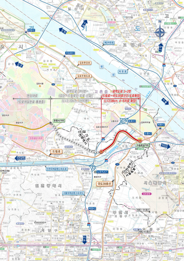 금번 드림로~국도39호선 착공으로 광역교통 도로시설 7개 노선이 전부 착공을 하게 됐으며 2023년 상반기 검단산단~봉수대로 확장공사 개통을 시작으로 2026년 상반기 검단~경명대로 도로신설까지 순차적으로 준공될 예정이고 철도시설 또한 인천지하철 1호선 연장 및 3개 역사 신설공사가 현재 33% 공정율로 2024년 12월 준공을 목표로 추진되고 있다.