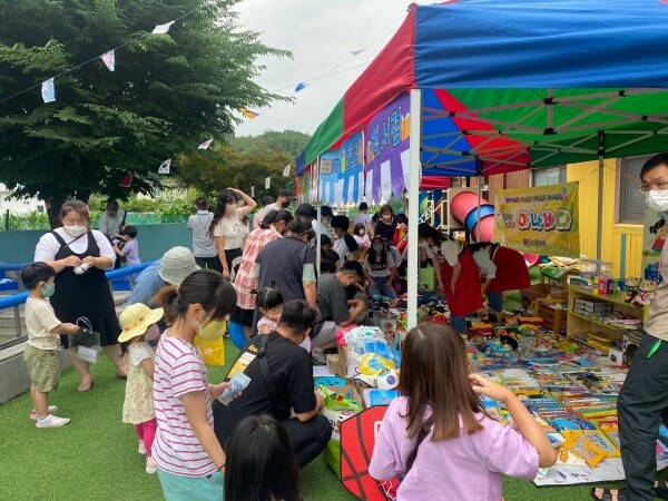기탁금은 지난 18일 한솔어린이집 앞마당에서 열린 ‘아나바다·시장놀이’의 수익금으로 옷, 책, 장난감 등을 지원받아 어른들과 아이들이 함께 판매한 금액과 자원봉사자가 먹거리 장터에서 파전 등을 판매해 얻은 수익금의 총액이다.