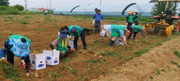이날 개군면 새마을협의회 주관으로 새마을협의회 20여명과 이장협의회 20명, 개군면 직원 등 총 50여명이 함께 모여 약 2톤의 감자를 수확했다.