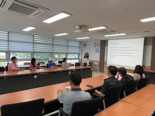 동 행정복지센터에서 진행된 이번 워크숍은 주민자치 변혜숙 강사가 주민총회 개최 방법 및 진행사항 검토 주민총회 홍보 사전투표 시행 방법 등에 대해 강의를 진행했다.