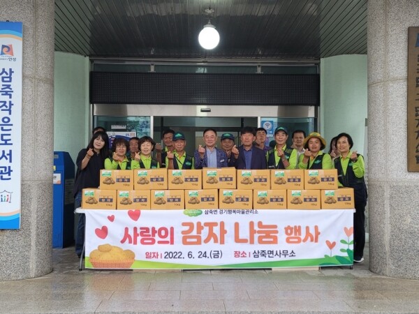 이날 행사에 쓰인 ‘사랑의 감자’는 삼죽 행복마을관리소의 지역특색사업 중 하나인 ‘행복나눔 텃밭가꾸기’ 사업을 통해 행복마을관리소 지킴이들이 직접 재배하고 지난 21일 22일 양일간 수확 및 선별작업까지 해서 마련한 것이다.