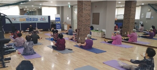 이 사업은 어르신의 건강증진 및 치매예방을 위해 전문 강사를 섭외해 단지 내 멀티스포츠관에서 근력운동 및 유연성 향상 운동 등 건강체조 수업을 제공하는 사업이다.