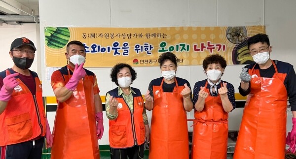 오이지를 담근 후 14일간 숙성해 중구 관내 원도심 7개동 자원봉사센터 상담가들을 통해 지역의 소외계층에게 전달될 예정이다.