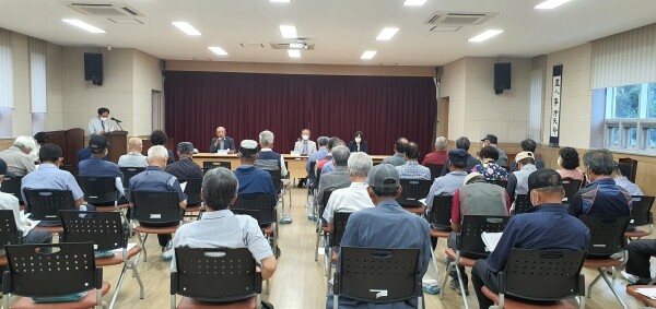 경로당 회장 등 50여명이 참석한 이번 행사에서는 임원 선출에 대한 총회 의결 추인 및 이·취임식 행사비 결산보고 9월 노인의 날 행사계획 등 여러 안건 등에 대해 각 리 노인회장 및 사무장들과 함께 논하는 시간을 가졌다.