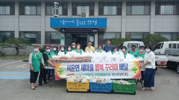 이날 서운면 새마을부녀회는 서안성푸드뱅크에서 지원받은 식료품들을 ‘행복 꾸러미’란 명칭의 식료품 꾸러미로 만들어 서운면 내 취약계층 총 100여 가구에 직접 방문해 전달했다.