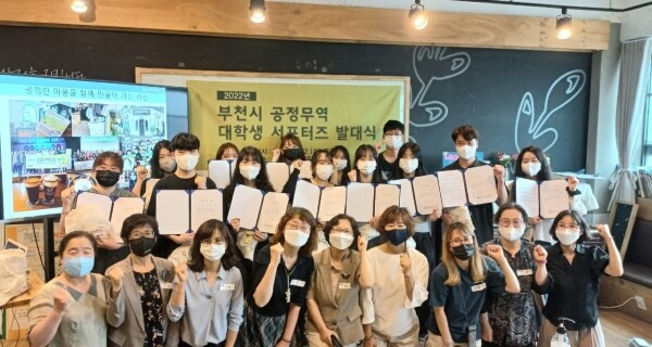 관내 대학에 재학 중이거나 부천시 거주 학생 15명으로 구성돼 6월부터 11월까지 활동하게 되며 공정무역 온라인 홍보 콘텐츠기획·제작 공정무역 관련 활동 및 제품 SNS 홍보 우리동네 공정무역 포트나잇 행사 지원 서포터즈 발대식·수료식 등을 수행할 예정이다.