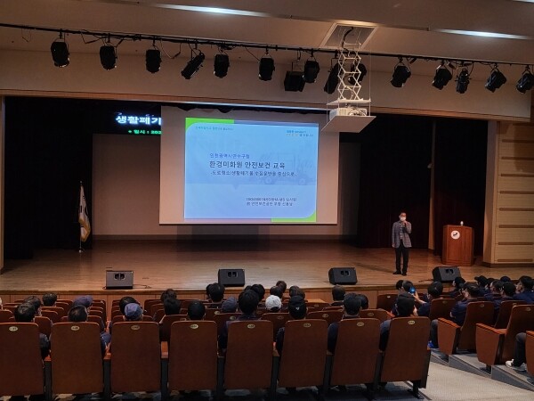 이번 교육은 한국산업안전보건공단에 의뢰해서 이뤄졌으며 안전보건교육 일반과 사고 예방 대책을 안내하고 안전의식을 고취시키는데 중점을 두고 진행됐다.