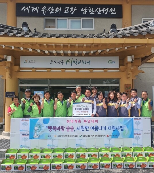 이날 전달된 후원금 중 일부는 남한산성면 지역사회보장협의체 특화사업 ‘행복바람 솔솔, 시원한 여름나기 사업’으로 연계돼 하절기 폭염을 이겨 낼 수 있는 서큘레이터와 제철과일 퇴촌토마토를 준비해 기초생활수급자, 한부모가정 등 30곳에 지원했다.