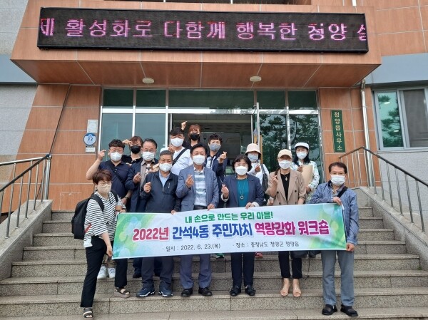 이번 워크숍은 청양읍의 주민자치 성공사례 강의 및 현장 탐방, 코로나19로 교류가 어려웠던 두 지역 간의 화합을 다지기 위한 간담회 등으로 진행됐다.