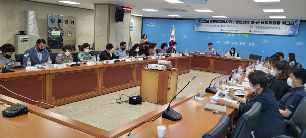 양주시지역사회보장협의체와 경기사회복지공동모금회가 공동주관한 이번 워크숍 2022년 6월 24일 오후 2시부터 오후 6시까지 4시간 동안 11개 읍면동 공공 위원장, 민간 위원장 등 총 28명이 참석해, 1부 특강으로는 광운대학교 상담복지대학원의 구지윤 겸임교수님의 “지역의 사회문제와 자원개발”이라는 주제로 강의가 진행됐으며 2부는 읍면동 민·관 공동위원장님들의 “읍면동지역사회보자협의체 활성화”를 주제로 열띤 토론을 진행했다.