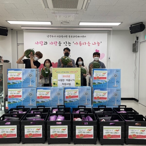 이번 사업은 여름을 맞아 폭염에 취약할 수 있는 저소득 이웃 50명에게 제철 과일인 수박과 보양식인 삼계탕, 갈비탕, 영양식품인 홍삼, 여름 이불로 구성된 꾸러미를 지원하고 냉방 용품이 부족한 120명에게 선풍기를 지원하는 사업이다.