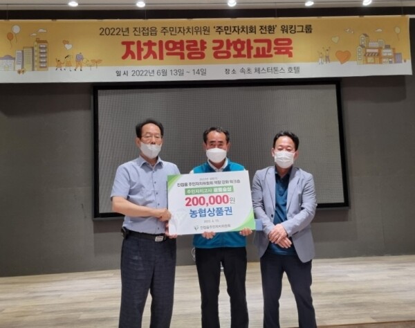 진접읍 주민자치위원회는 광릉숲상, 왕숙천상, 알동산상을 마련해 각각 주민자치고사에서 우수한 성적을 거둔 자치위원에게 상을 수여하고 주민자치관련 역량강화를 위해 그동안 노력해온 주민자치위원들을 격려했다.