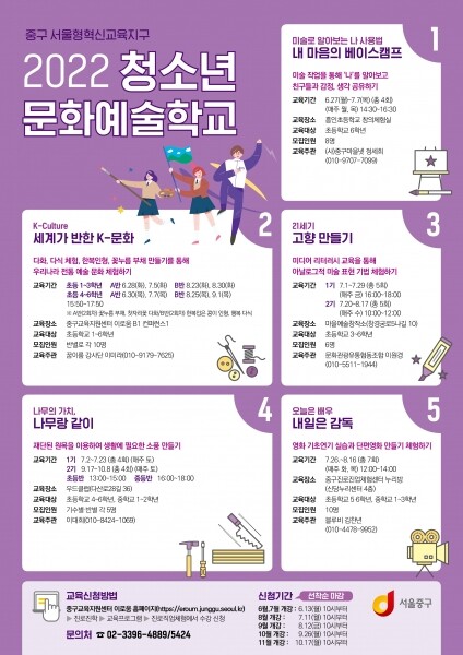우선 중구교육지원센터는 지난 27일부터 '2022 청소년문화예술학교'를 열고 관내 청소년들을 위한 프로그램 운영에 나섰다.
