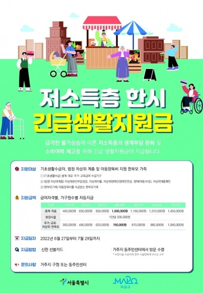 총 47억원 규모의 국가 예산을 투입하는 이번 한시 긴급생활지원금은 충전식 선불카드로 지급되며 별도의 신청 없이 7월 29일까지 신분증을 지참하고 주소지 동 주민센터를 방문하면 카드를 수령할 수 있다.