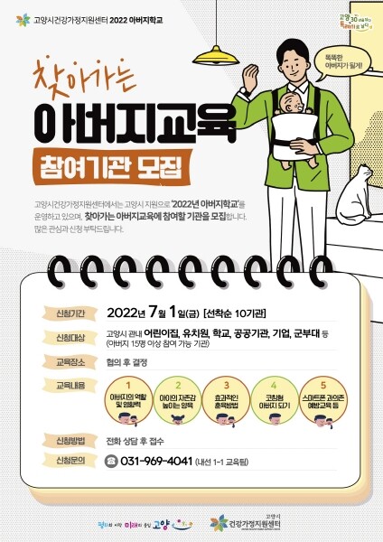 고양시 건강가정지원센터는 아버지가 자녀양육 및 가사 등에 적극 참여하는 돌봄 문화 조성을 위해 ‘아버지 학교’를 운영하고 있다.