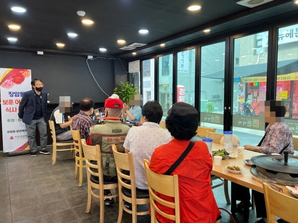 이번 행사는 어려운 이웃을 돕고 싶다는 업체의 제안으로 진행됐으며 호국 보훈의 달 6월을 맞이해 저소득층 보훈 어르신을 초청해 오겹살을 대접하는 방식으로 진행됐다.