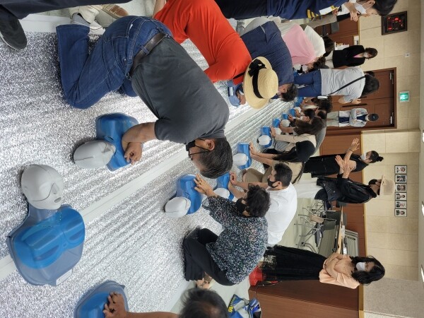 이날 교육은 골든타임의 중요성 심폐소생술처치방법 자동심장충격기사용법 이물질에 의한 기도폐쇄 생활응급처치법 등 응급환자 발생 시 유용하게 활용할 수 있는 요령 등 이론 뿐 아니라 실제 상황을 가정한 실습 위주로 진행됐다.