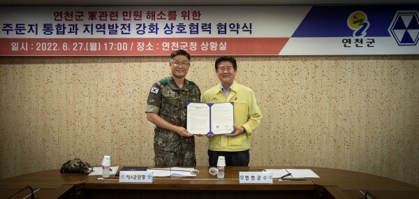 아울러 연천군과 6군단은 이 협약과 함께 합의한 군 훈련장 일대 ‘주둔지 통합과 지역발전 강화 상호협력 방안’에 대해 협력해 군 유휴부지 활용을 위한 관련 법령의 제·개정 등 제도 개선을 위해 국방부 등 중앙정부에 건의할 계획이라고 전했다.
