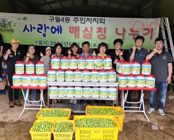 이를 통해 얻은 매실청 100병은 구월4동 내 어려운 이웃과 사회복지시설, 지역아동센터 등에 전달할 예정이다.