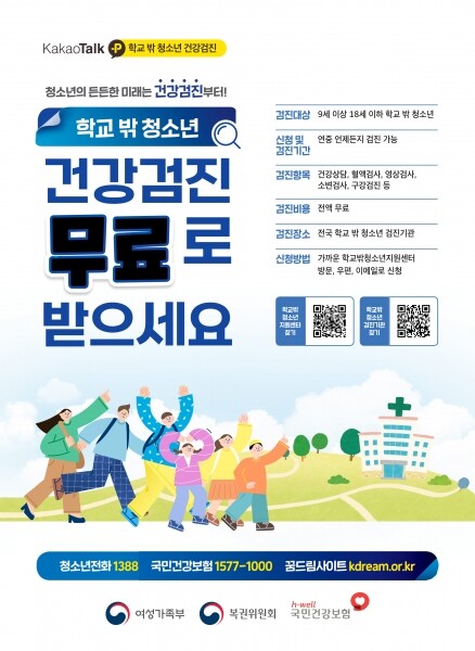 동두천시에 거주하는 만 9세 이상 18세 이하의 학교 밖 청소년이라면 누구나 신청할 수 있으며 건강검진 대상자로 선정되면 가까운 검진 기관을 방문해 건강 상태를 확인할 수 있다.