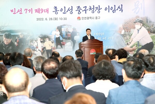 홍인성 구청장은 이임사를 통해 “지난 4년간 구청장으로 재직하며 ‘개항문화 미래도시 사람사는 복지중구’ 구정비전을 실현하고자 늘 엄숙한 사명감을 가지고 책임감 있게 일했다”고 밝혔다.