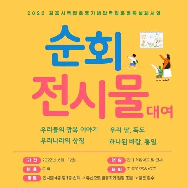 김포시독립운동기념관 관계자는 “전시물 대여를 통해 기념관을 직접 방문하기 힘든 시민의 일상에 문화예술 향유 기회가 확대되기를 바란다”고 전했다.