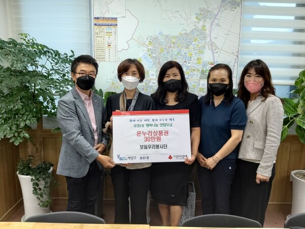 보듬우리봉사단은 지난 3월 계산권역에 온누리상품권 60매 기탁을 시작으로 이번 분기는 효성권역에 나눔을 실천했으며 향후 작전, 계양권역에 대한 지원을 순차적으로 진행할 예정이다.