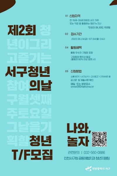 모집은 오는 7월 4일까지이며 인천 서구에 거주하거나 직장에 재직 중인 만 39세 이하 청년이면 누구나 신청할 수 있다.
