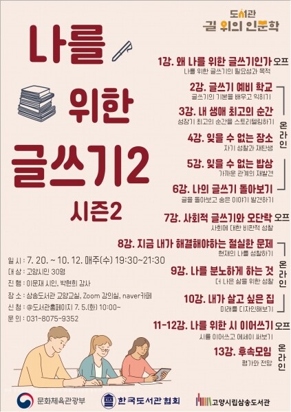 ‘나를 위한 글쓰기2’는 문화체육관광부가 주최하고 한국도서관협회가 주관하는 길 위의 인문학 공모사업이다.