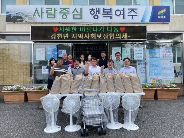 “시원한 여름나기 지원사업”은 여름철임에도 불구하고 겨울이불을 사용하는 취약가구에게 여름이불을 지원하고 냉방기구가 없는 가구에 선풍기를 지원하면서 혹서기를 지내기 어려운 가구를 위해 강천면 지역사회보장협의체에서 모금해 온 공동모금회비를 활용해 혹서기 취약계층을 지원하는 사업이다.