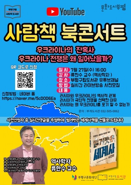 사람책 북 콘서트는 오는 7월 27일 부개도서관 미디어창작공간 ‘나래’에서 촬영하고 부평구립도서관 유튜브 채널을 통해 실시간 송출한다.