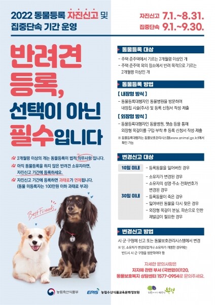 구 관계자는 “동물등록 자진신고로 소유자의 자발적인 동물등록을 유도해 반려견에 대한 책임의식을 높이고 유기견 발생을 방지할 것”이라고 말했다.