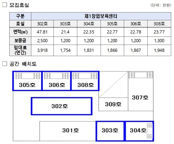 입주 공간은 제1창업보육센터 6개 호실이며 최초 1년 계약 후 1년마다 연장하는 방식으로 최장 3년까지 입주 가능하다.