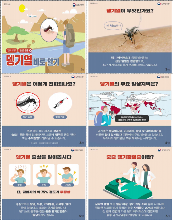 현재까지 국내 발생 사례는 없지만, 2014년 일본 요요기공원 뎅기열 집단 감염처럼 사람-매개체 간 전파로 단기 유행이 발생한 바 있어 국내 서식 모기종과 환자수를 고려해 조기에 전파를 차단할 조치가 필요하다.